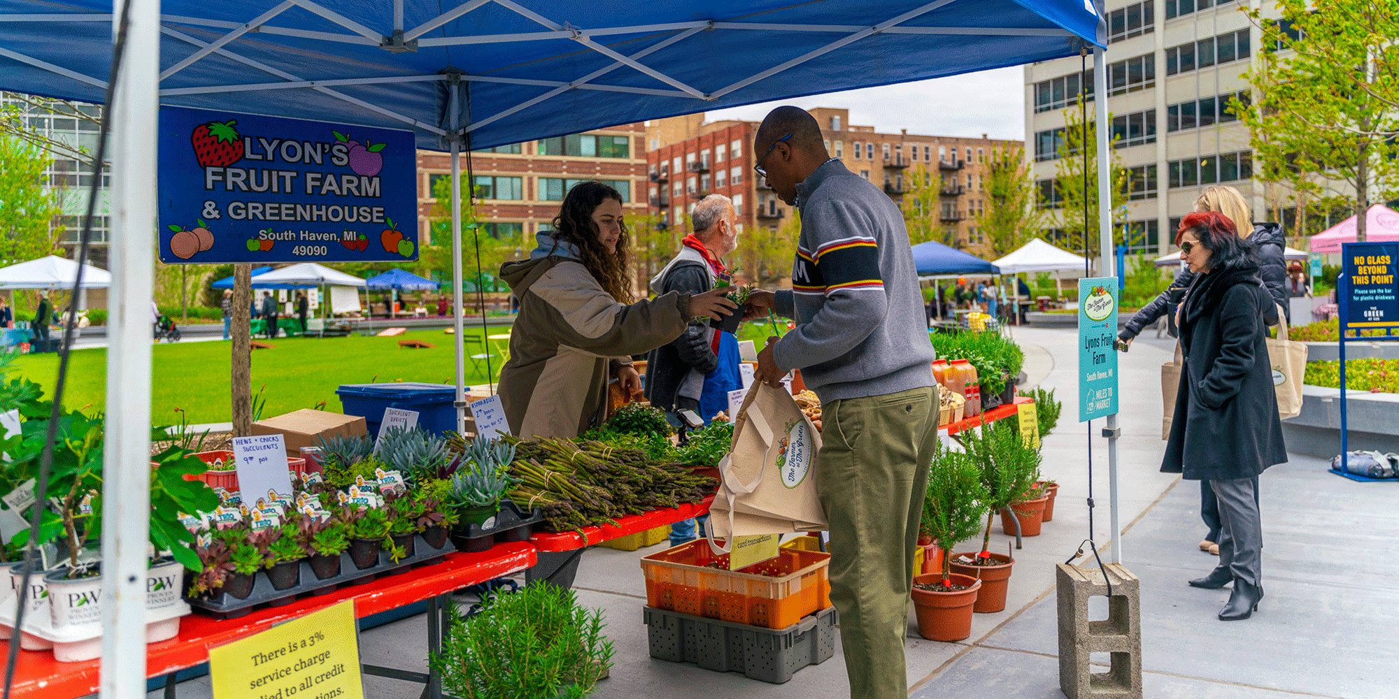 Now in its third season, The Farmer at The Green, presented by BMO, is a downtown Chicago farmers market. Shop for fresh, seasonal produce and locally made products from Chicago-based vendors and Midwest farmers. Conveniently located just south of Union Station, The Farmer at The Green is ideal for commuters and Loop and West Loop residents alike!