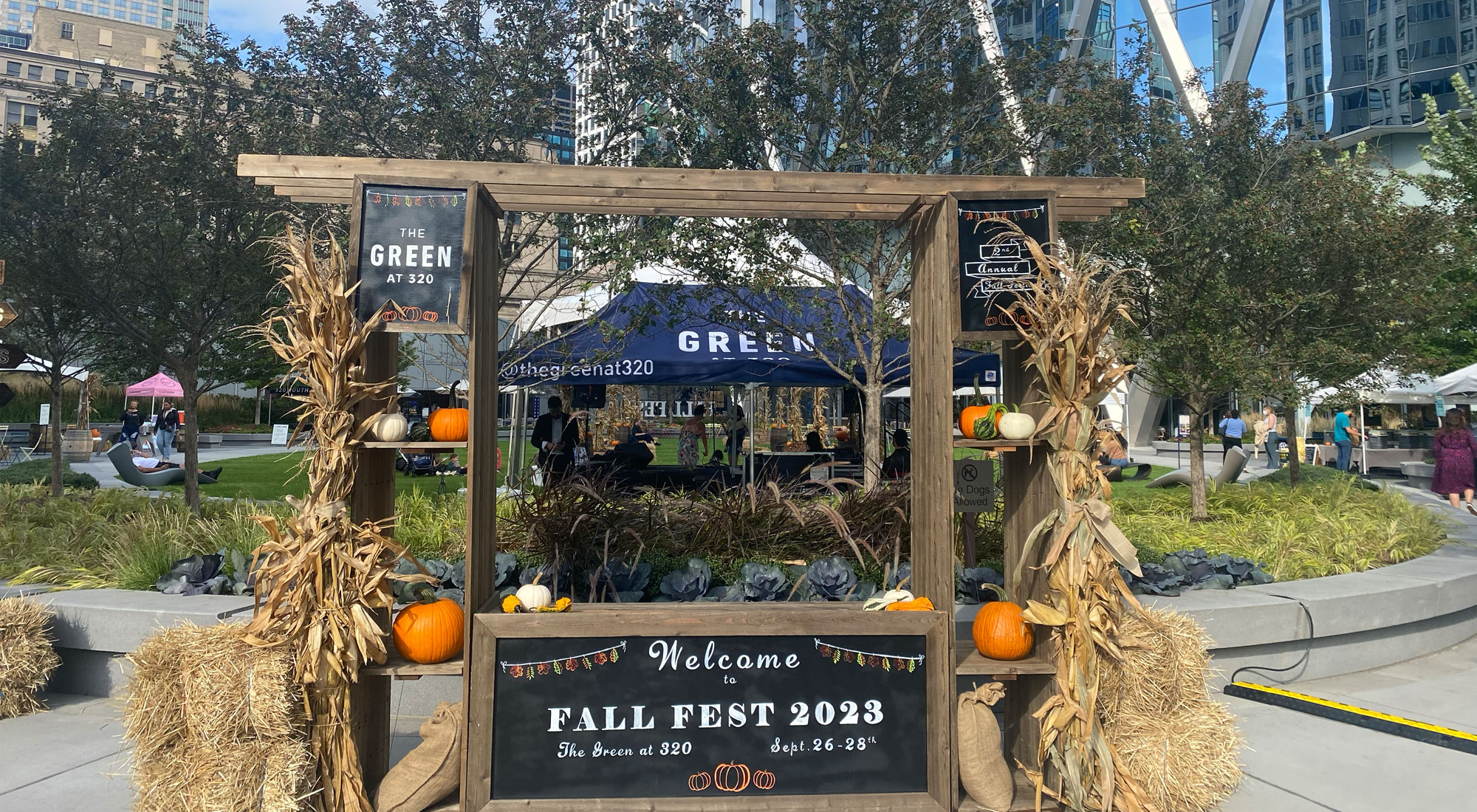 People enjoy a large outdoor event at The Green at 320
