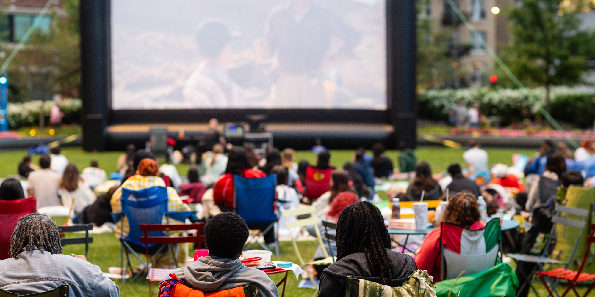 Empty chairs set up for an event in The Green's amphitheater
