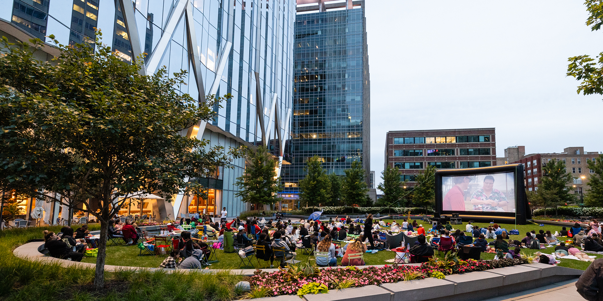 The lawn of The Green at 320 in front of 320 S Canal building